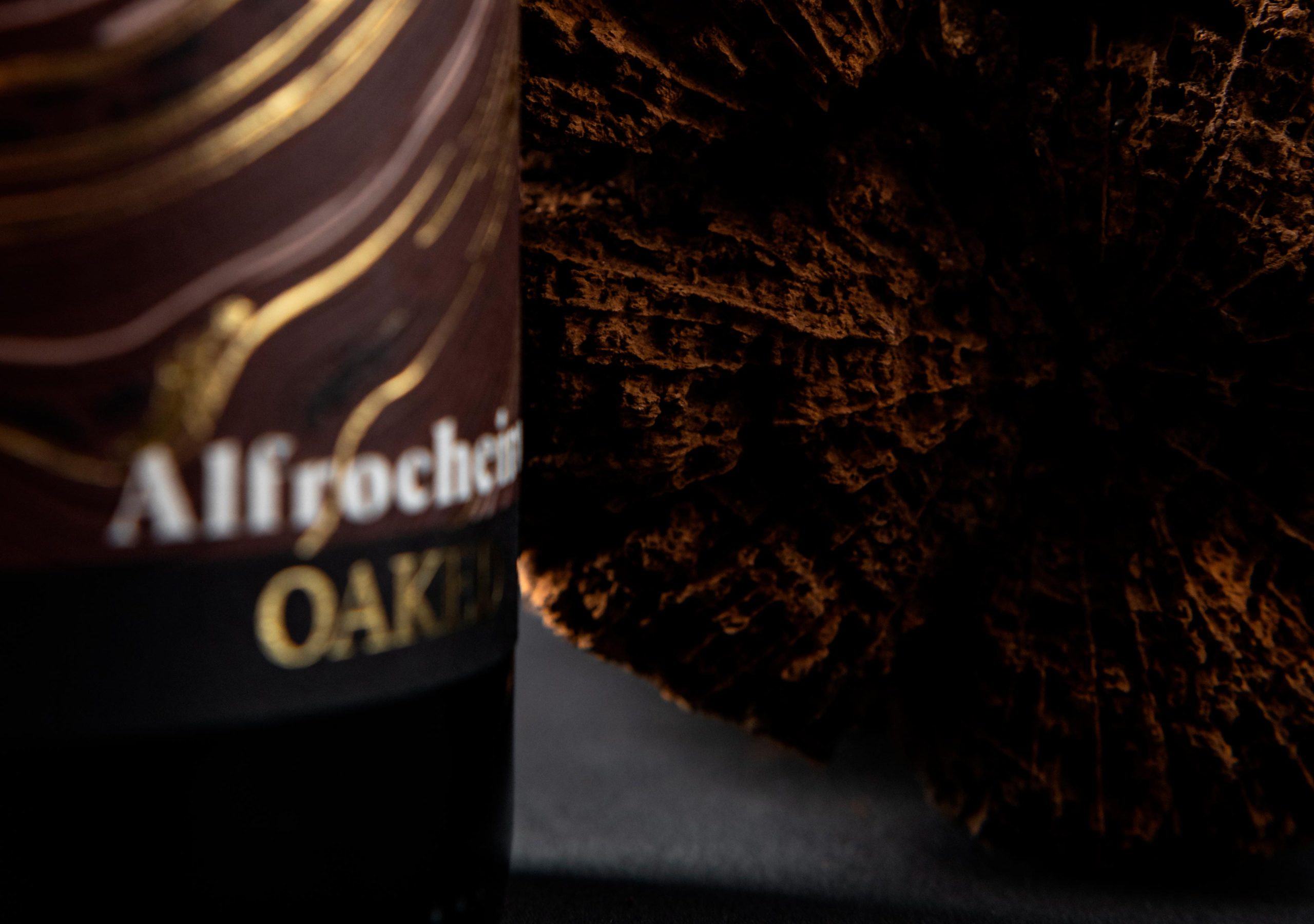 Para este grande projeto, criamos não apenas um, mas dois rótulos para o mesmo vinho, 100% Alfrocheiro. Apesar de um dia os vinhos já terem sido um só, estes foram separados à nascença! Para o Alfrocheiro OAKED, o nosso maior objetivo era conseguir evidenciar a sua essência através de texturas que nos remetessem para as curvaturas instaladas nas barricas de Carvalho Francês, onde o vinho esteve em estágio durante 12 meses.