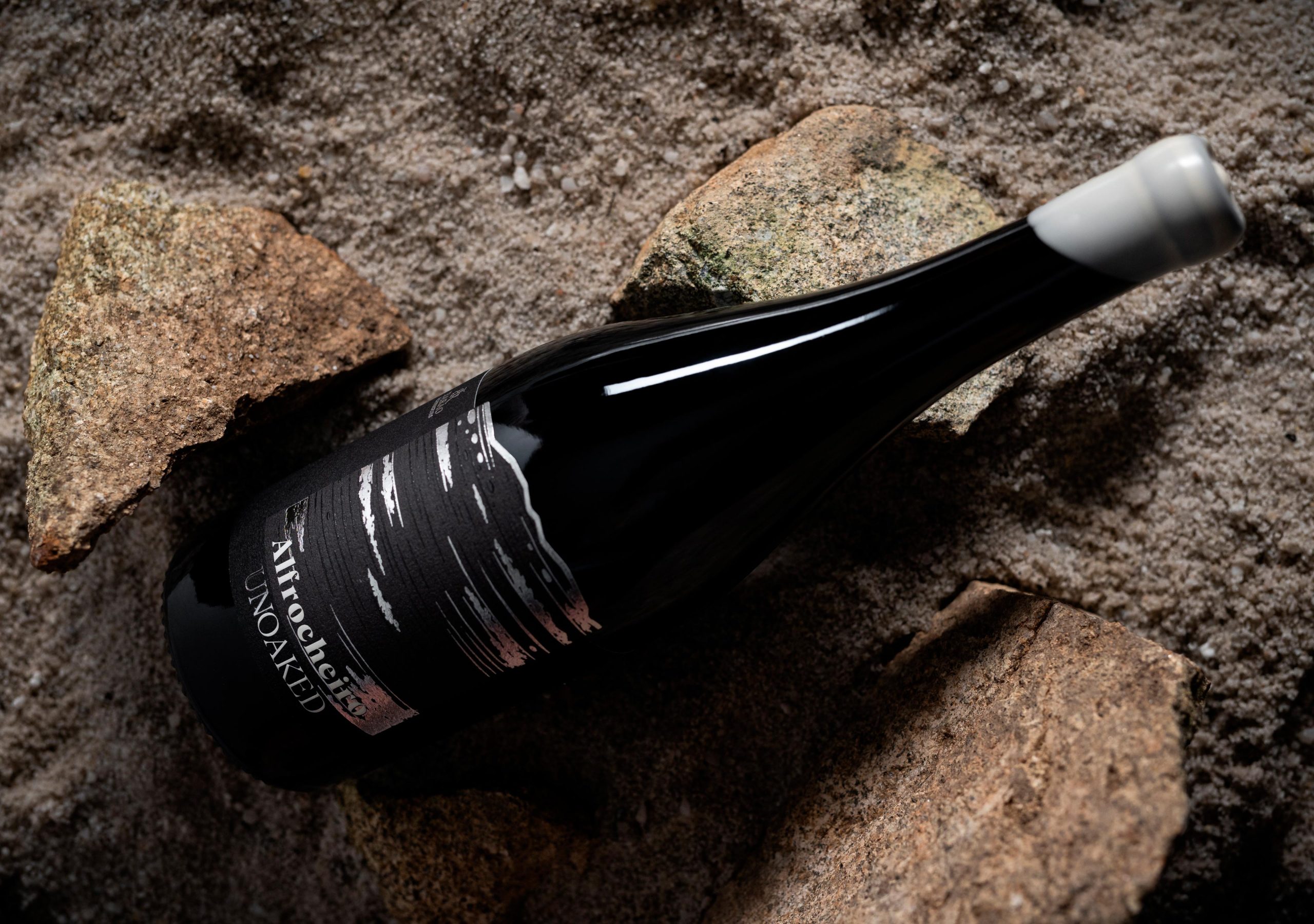 Para este grande projeto, criamos não apenas um, mas dois rótulos para o mesmo vinho, 100% Alfrocheiro. Apesar de um dia os vinhos já terem sido um só, estes foram separados à nascença! No que diz respeito ao Alfrocheiro UNOAKED, tivemos como principal foco transmitir a essência deste vinho através de texturas retas e tons frios e metalizados que fizessem representar as Cubas de Inox, onde o UNOAKED este em estágio durante 12 meses.
