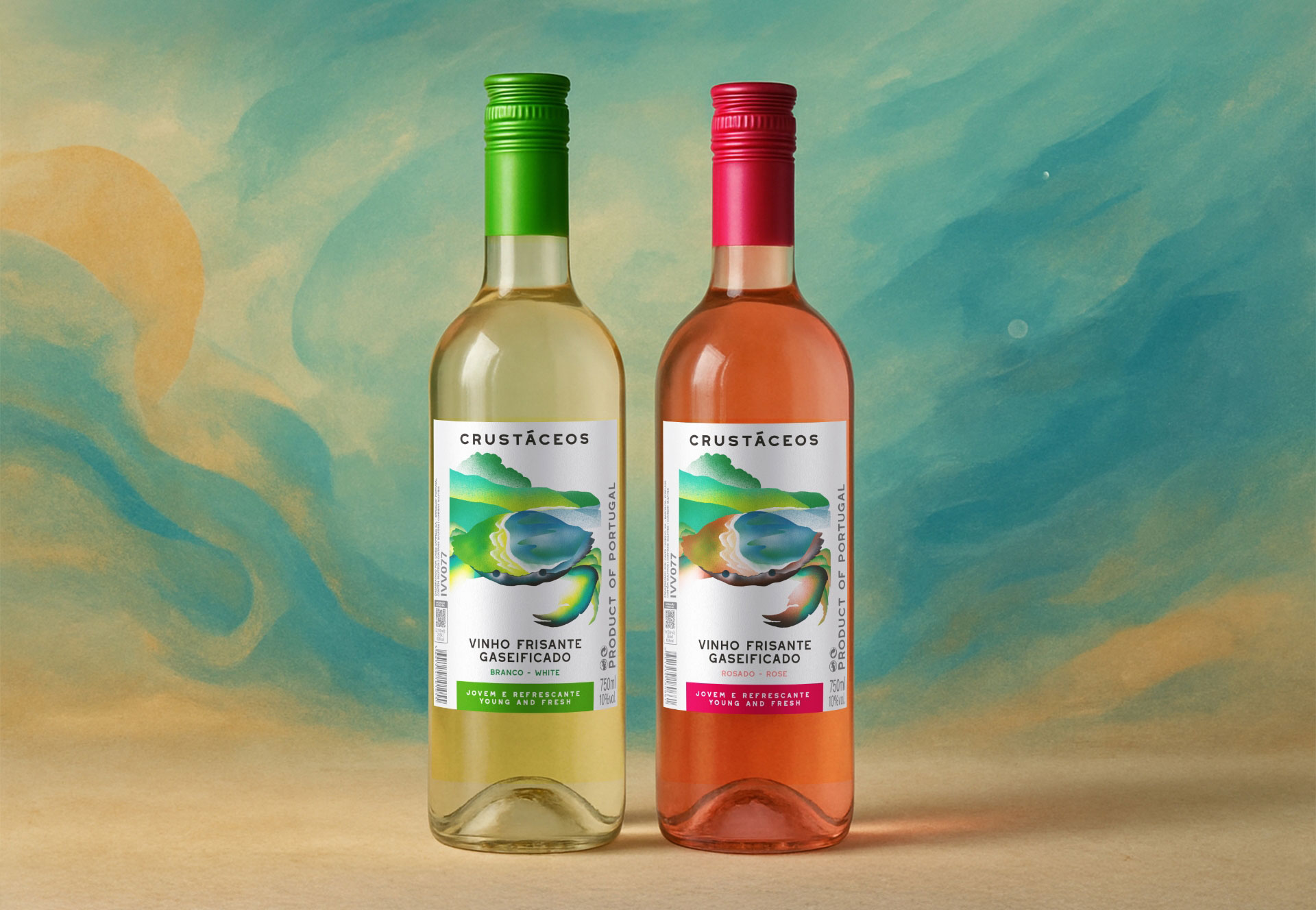 Apresentamos o novo design dos vinhos Crustáceos Branco e Rosé, uma dupla frisante e vibrante pensada para momentos leves e descontraídos. Criámos um rótulo que traduz essa frescura através de uma ilustração moderna, fluida e com um toque de mar, em sintonia com o espírito jovem destes vinhos.